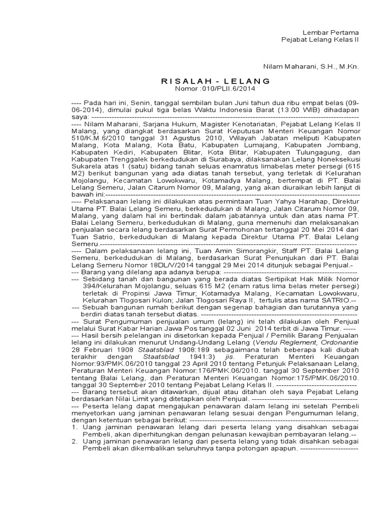 Lelang (kpknl) bogor, akan melaksanakan penjualan umum secara lelang atas barang milik negara berupa : C) bukti setoran bphtb (untuk lelang tanah dan/atau bangunan). Risalah lelang merupakan akta autentik dan mempunyai kekuatan pembuktian yang sempurna serta memuat semua peristiwa yang terjadi dalam prosesi penjualan lelang sebagai bukti otentikasi pelaksanaan lelang sebagaimana yang telah diatur dalam pasal 35 vr dan kemudian ditegaskan dalam ketentuan pasal 1 angka 35 peraturan menteri keuangan nomor 27/pmk.06/2016 tentang petunjuk pelaksanaan lelang, yang antara lain berbunyi bahwa berita acara pelaksanaan lelang dibuat oleh pejabat lelang mempunyai. Dan melakukan segala sesuatu yang dianggap perlu guna melaksanakan kuasa ini. 12 contoh surat kuasa pengambilan umum khusus beserta.